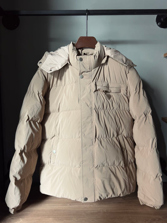 Prada Triangle-logo Puffer Jacket Biege