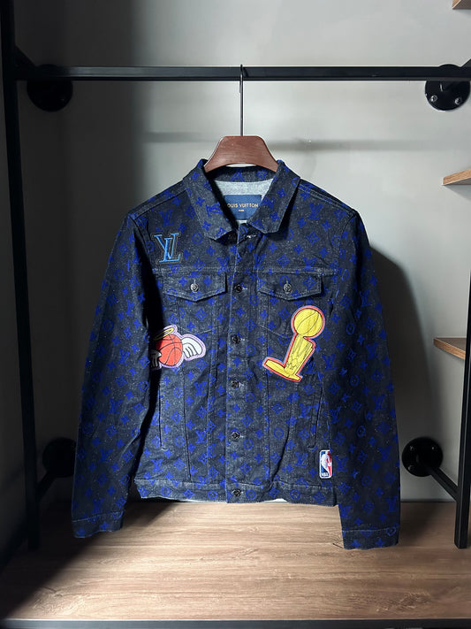 Louis Vuitton Blue Logo Monogram Denim Contrast Collar Detail Jacket