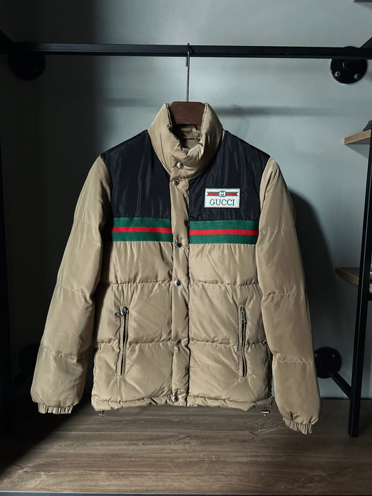 Gucci - Web stripe satin down jacket Biege