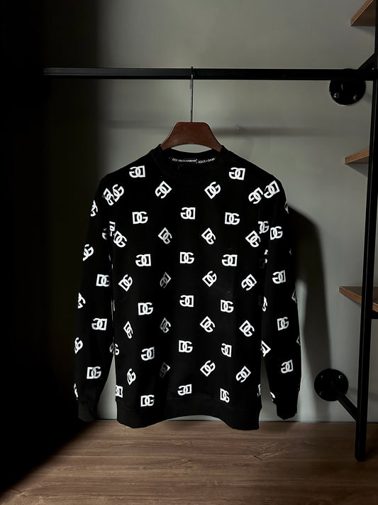 Dolce &Gabbana Wool and silk jacquard round-neck sweatshirt Black