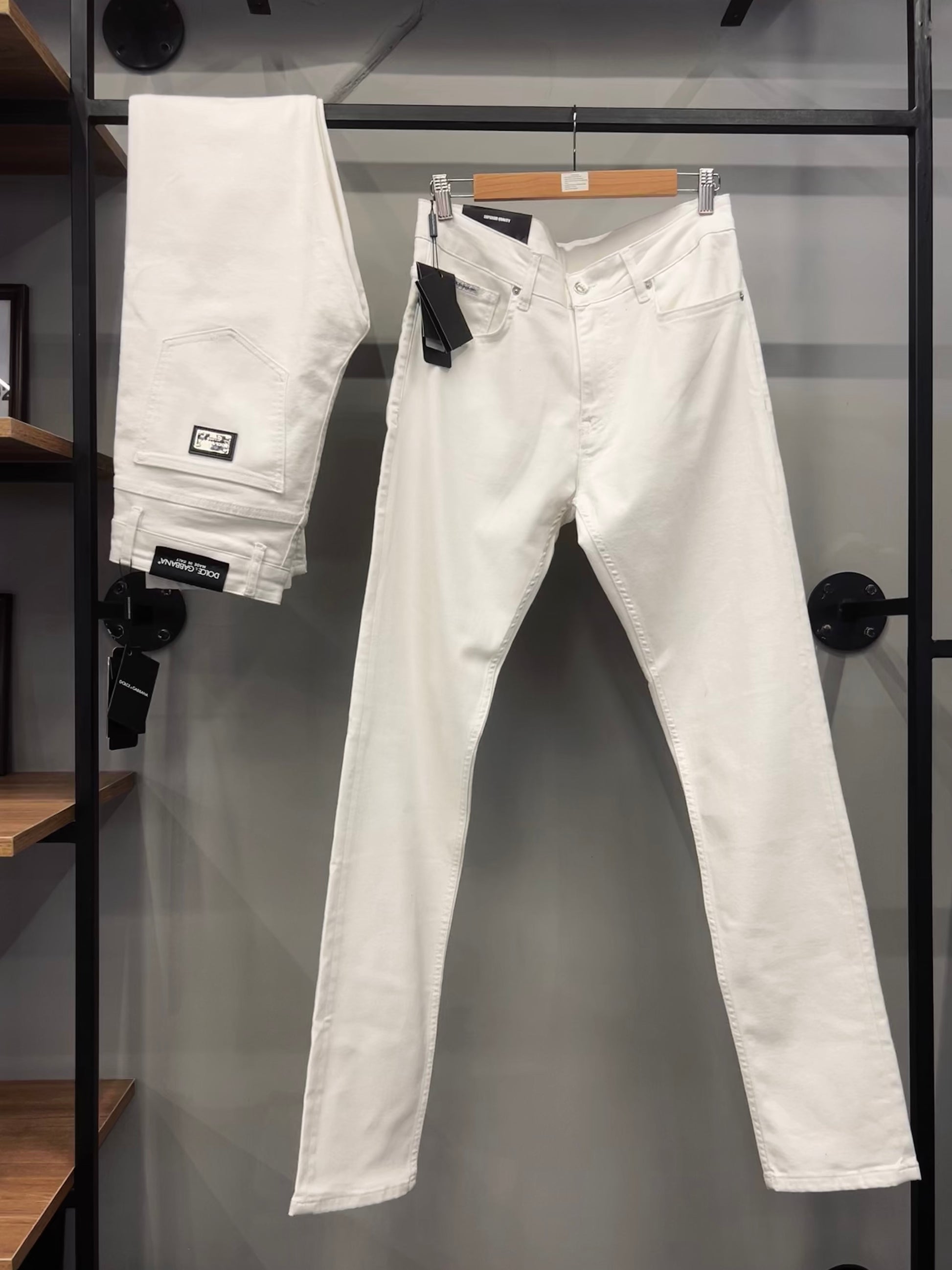 Dolce & Gabbana Logo Plaque Denim Slim Fit Jeans WHITE
